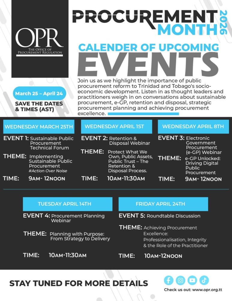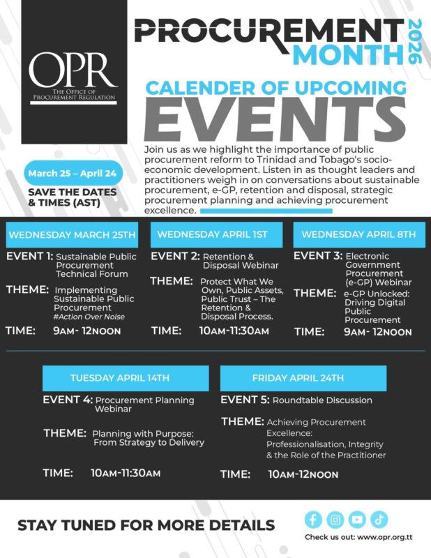PROCUREMENT MONTH 2026 IN TRINIDAD AND TOBAGO IS UNDERWAY, PROMOTING SUSTAINABILITY AND PROFESSIONALISM IN PUBLIC PROCUREMENTProcurement Month 2026, led by The Office of Procurement Regulation (OPR), is currently taking place with a dynamic...